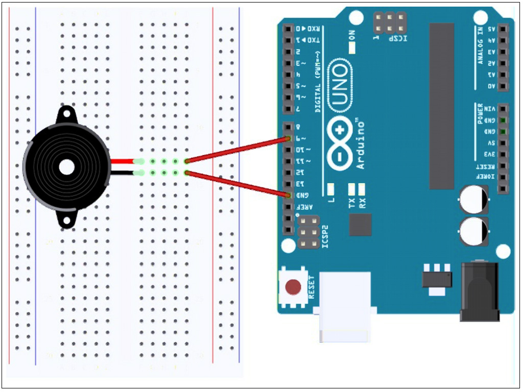 He did further research and found out that on-line there is a lot of information about the frequencies of the notes used to produce music. Using this information, some basic mathematics, and his knowledge on how to program the platform to make sounds and make LEDs go on and off he put this experiment together.