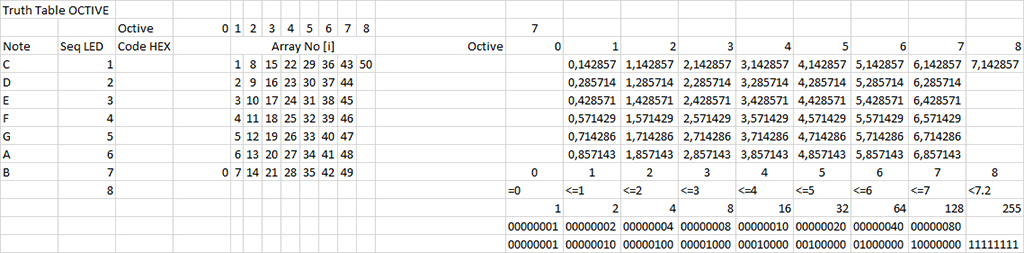 The functioning is quite simple. The built and programmed the hardware which produces all the notes (that Gerard could hear) from a B0 through to C8 based on a equal tempered scale where A4 = 440Hz. The table with all the information to set up the buzzer routines can be seen if you click here.
